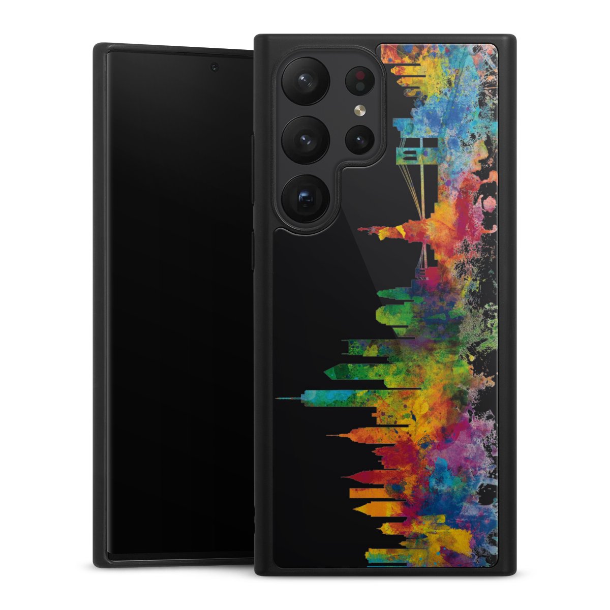 We print your design on the back of the glass inlay and then connect it firmly to the silicone case ,so that nothing sticks out and everything looks like it was cast from one piece. In addition, the sturdy glass element is protected from scratches by an additional coating and ensures a slight reflection on the shiny print image.
