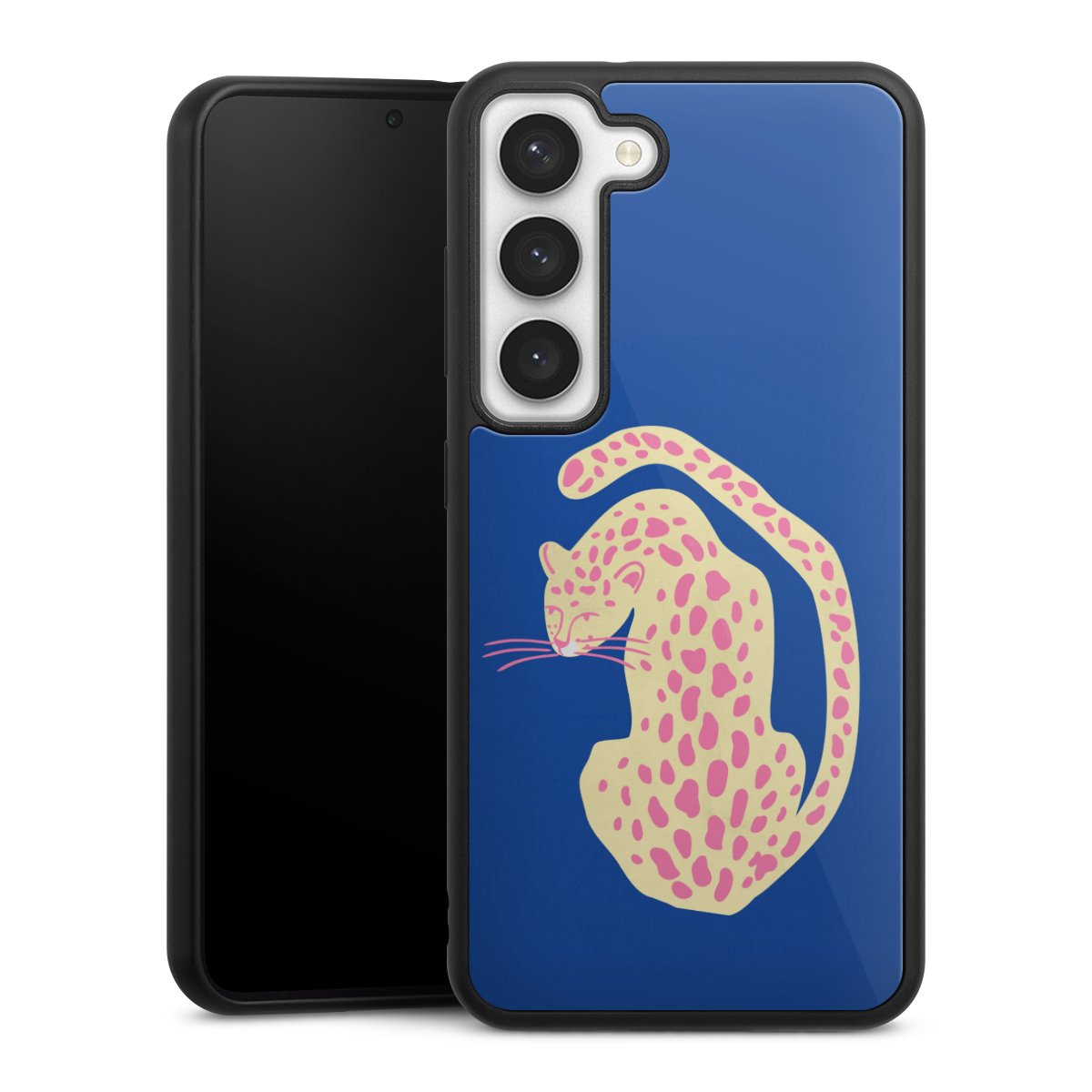 We print your design on the back of the glass inlay and then connect it firmly to the silicone case ,so that nothing sticks out and everything looks like it was cast from one piece. In addition, the sturdy glass element is protected from scratches by an additional coating and ensures a slight reflection on the shiny print image.