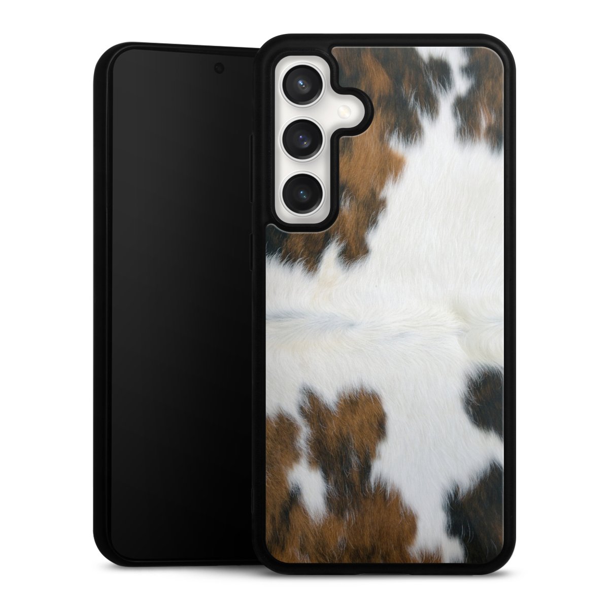 We print your design on the back of the glass inlay and then connect it firmly to the silicone case ,so that nothing sticks out and everything looks like it was cast from one piece. In addition, the sturdy glass element is protected from scratches by an additional coating and ensures a slight reflection on the shiny print image.
