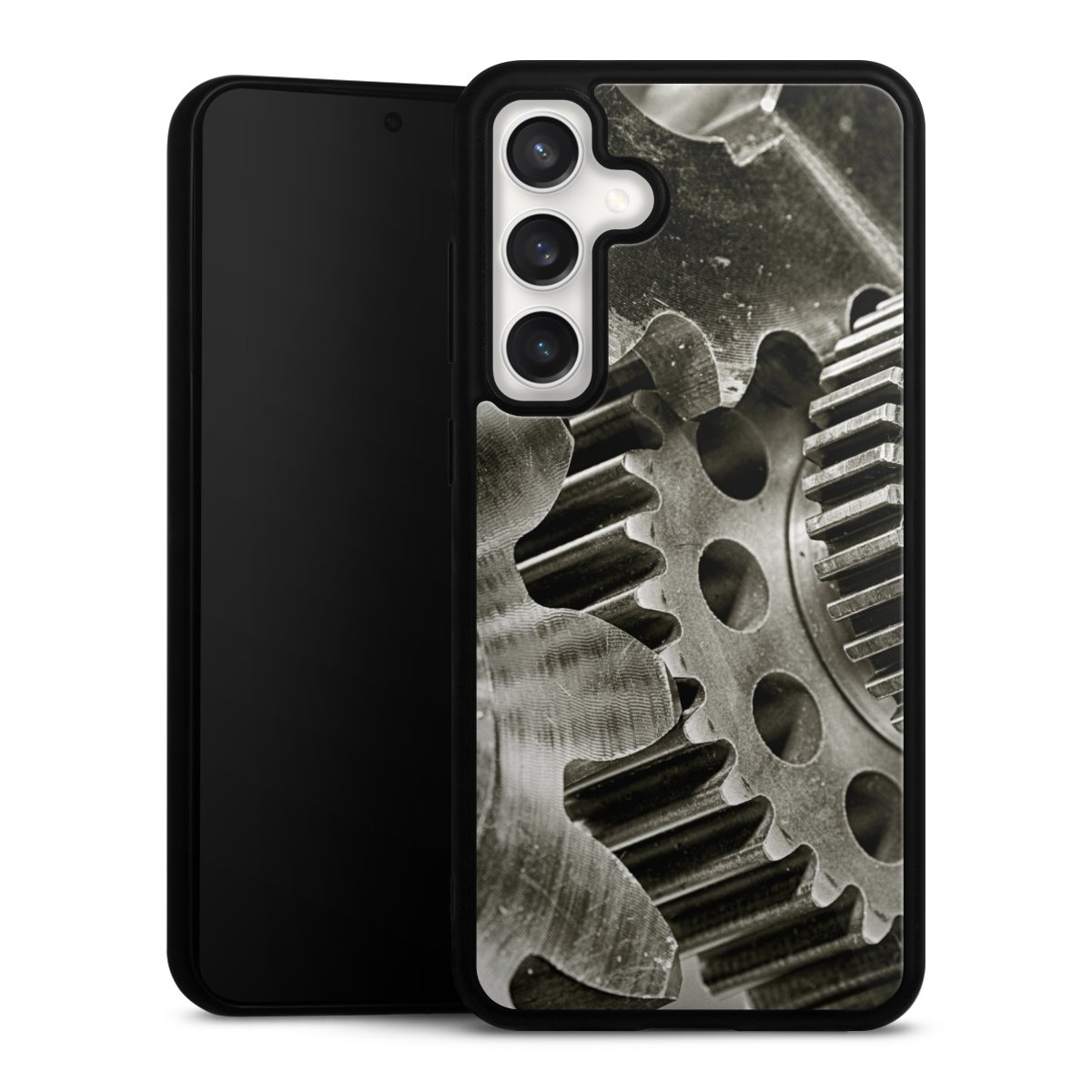 We print your design on the back of the glass inlay and then connect it firmly to the silicone case ,so that nothing sticks out and everything looks like it was cast from one piece. In addition, the sturdy glass element is protected from scratches by an additional coating and ensures a slight reflection on the shiny print image.