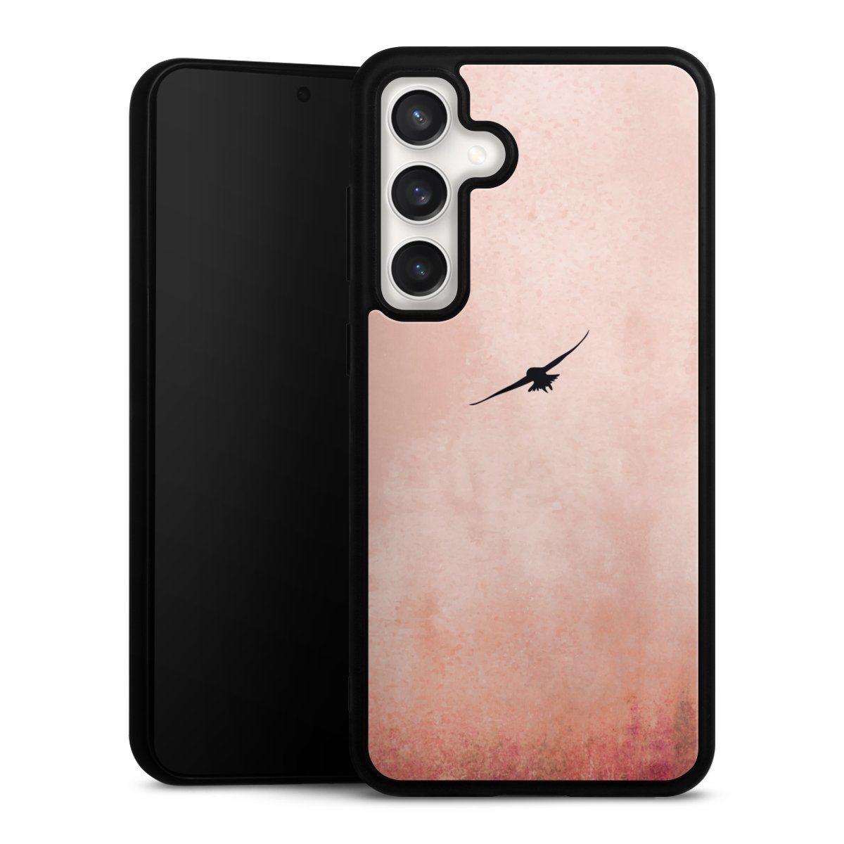 We print your design on the back of the glass inlay and then connect it firmly to the silicone case ,so that nothing sticks out and everything looks like it was cast from one piece. In addition, the sturdy glass element is protected from scratches by an additional coating and ensures a slight reflection on the shiny print image.