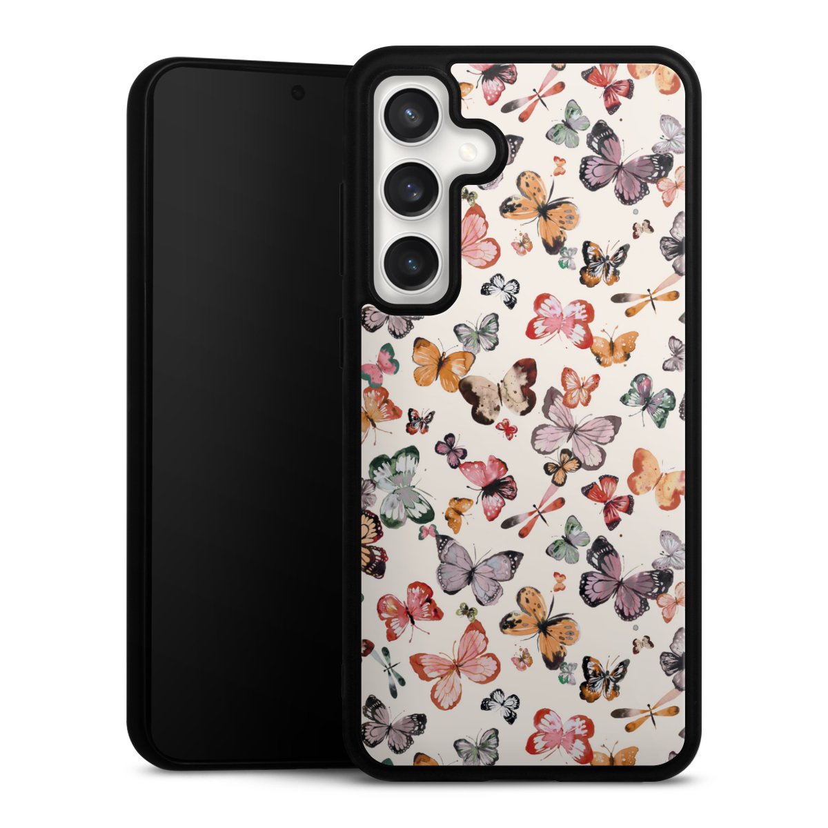 We print your design on the back of the glass inlay and then connect it firmly to the silicone case ,so that nothing sticks out and everything looks like it was cast from one piece. In addition, the sturdy glass element is protected from scratches by an additional coating and ensures a slight reflection on the shiny print image.