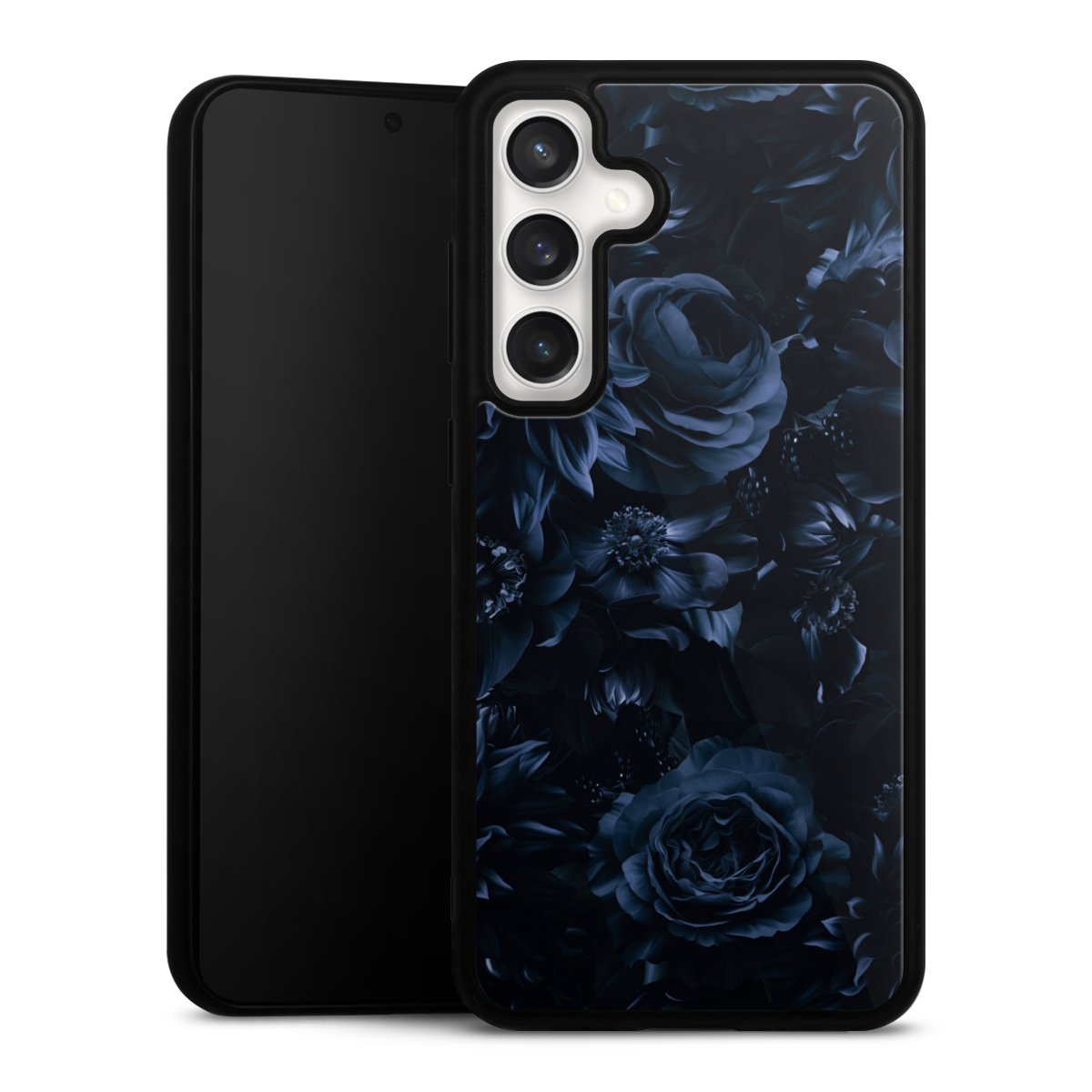We print your design on the back of the glass inlay and then connect it firmly to the silicone case ,so that nothing sticks out and everything looks like it was cast from one piece. In addition, the sturdy glass element is protected from scratches by an additional coating and ensures a slight reflection on the shiny print image.