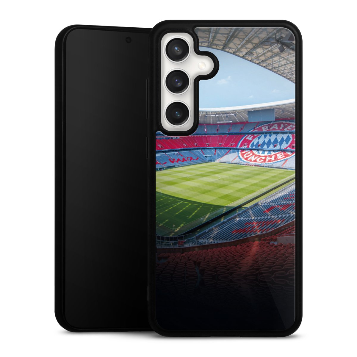 We print your design on the back of the glass inlay and then connect it firmly to the silicone case ,so that nothing sticks out and everything looks like it was cast from one piece. In addition, the sturdy glass element is protected from scratches by an additional coating and ensures a slight reflection on the shiny print image.