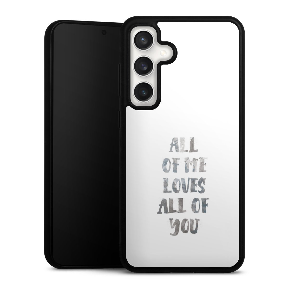 We print your design on the back of the glass inlay and then connect it firmly to the silicone case ,so that nothing sticks out and everything looks like it was cast from one piece. In addition, the sturdy glass element is protected from scratches by an additional coating and ensures a slight reflection on the shiny print image.