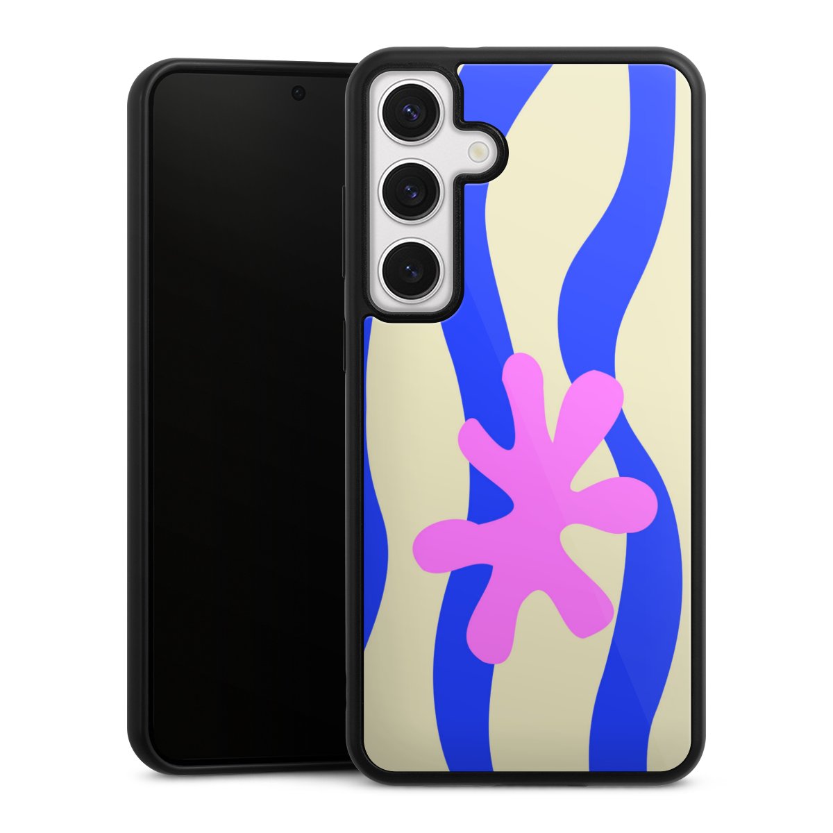 We print your design on the back of the glass inlay and then connect it firmly to the silicone case ,so that nothing sticks out and everything looks like it was cast from one piece. In addition, the sturdy glass element is protected from scratches by an additional coating and ensures a slight reflection on the shiny print image.