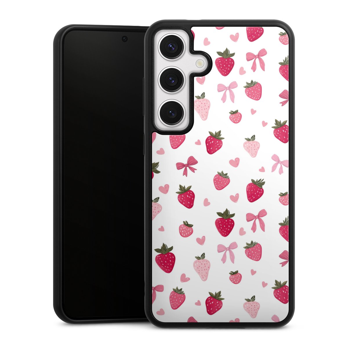 We print your design on the back of the glass inlay and then connect it firmly to the silicone case ,so that nothing sticks out and everything looks like it was cast from one piece. In addition, the sturdy glass element is protected from scratches by an additional coating and ensures a slight reflection on the shiny print image.