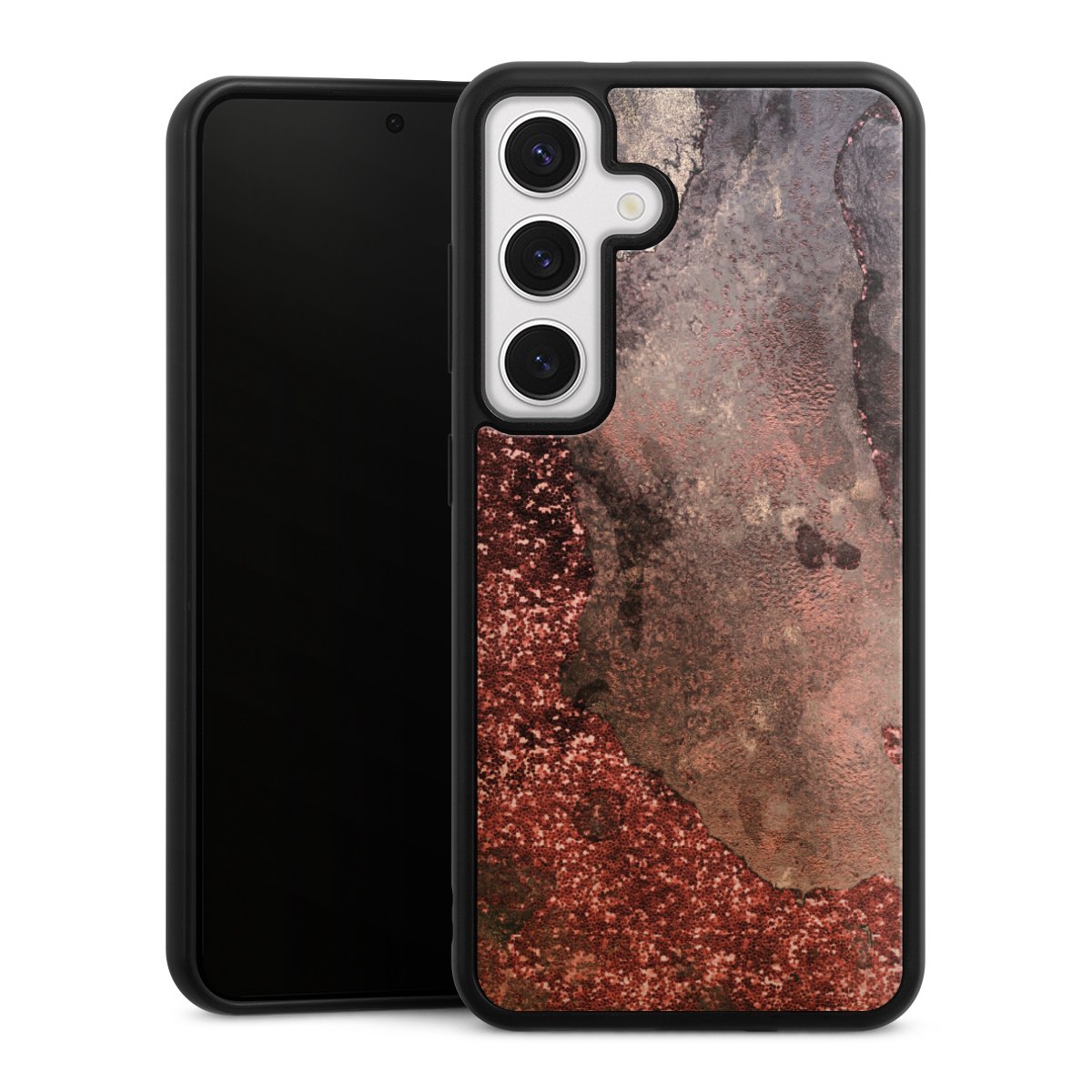 We print your design on the back of the glass inlay and then connect it firmly to the silicone case ,so that nothing sticks out and everything looks like it was cast from one piece. In addition, the sturdy glass element is protected from scratches by an additional coating and ensures a slight reflection on the shiny print image.