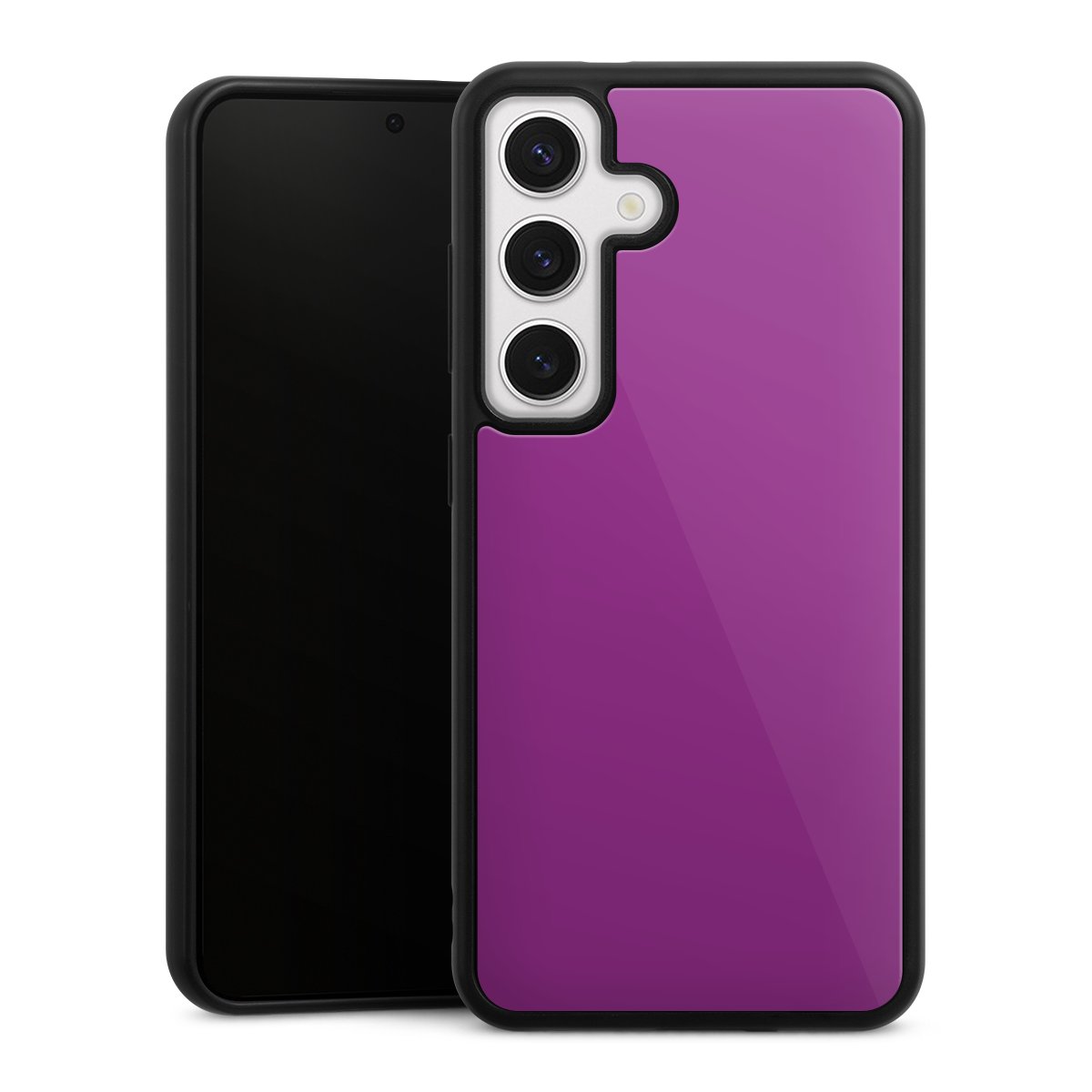 We print your design on the back of the glass inlay and then connect it firmly to the silicone case ,so that nothing sticks out and everything looks like it was cast from one piece. In addition, the sturdy glass element is protected from scratches by an additional coating and ensures a slight reflection on the shiny print image.