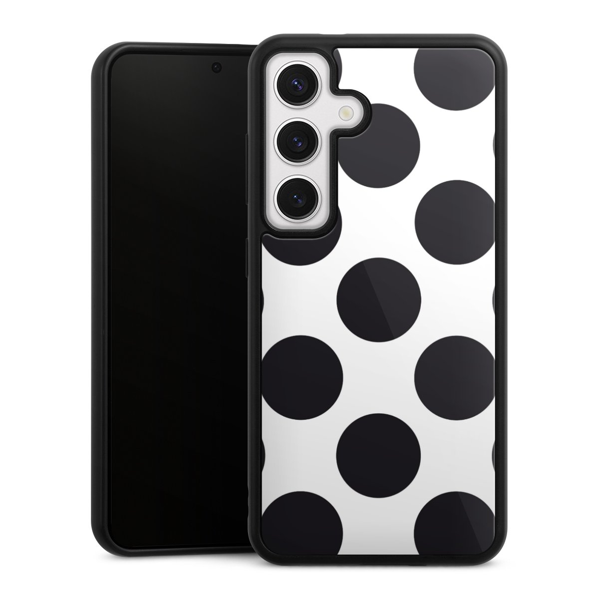 We print your design on the back of the glass inlay and then connect it firmly to the silicone case ,so that nothing sticks out and everything looks like it was cast from one piece. In addition, the sturdy glass element is protected from scratches by an additional coating and ensures a slight reflection on the shiny print image.