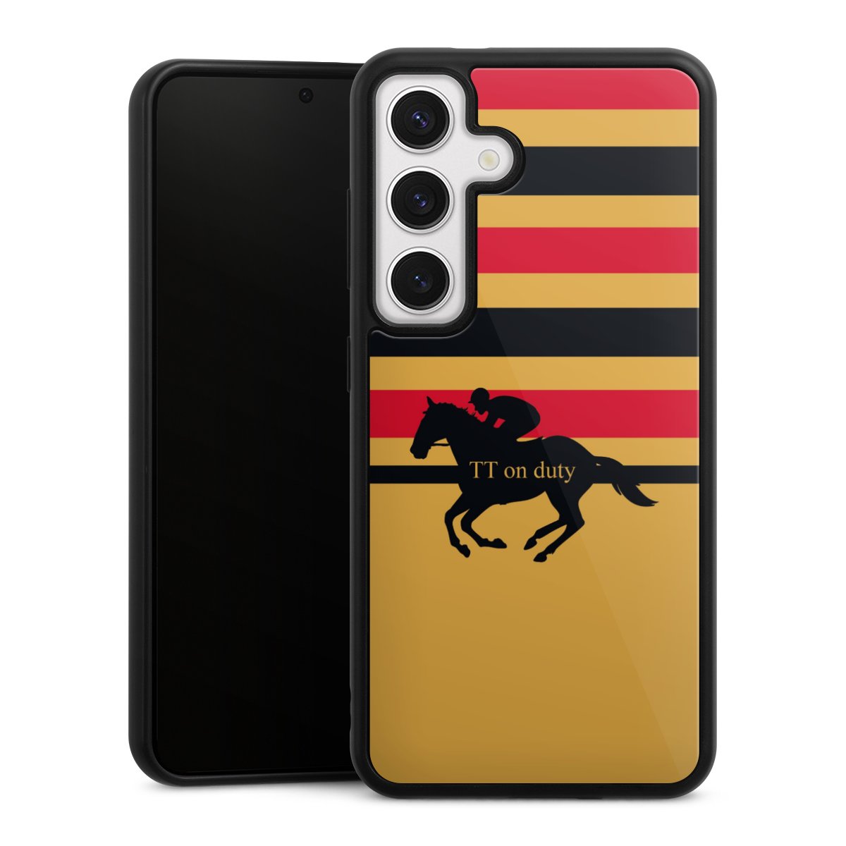 We print your design on the back of the glass inlay and then connect it firmly to the silicone case ,so that nothing sticks out and everything looks like it was cast from one piece. In addition, the sturdy glass element is protected from scratches by an additional coating and ensures a slight reflection on the shiny print image.