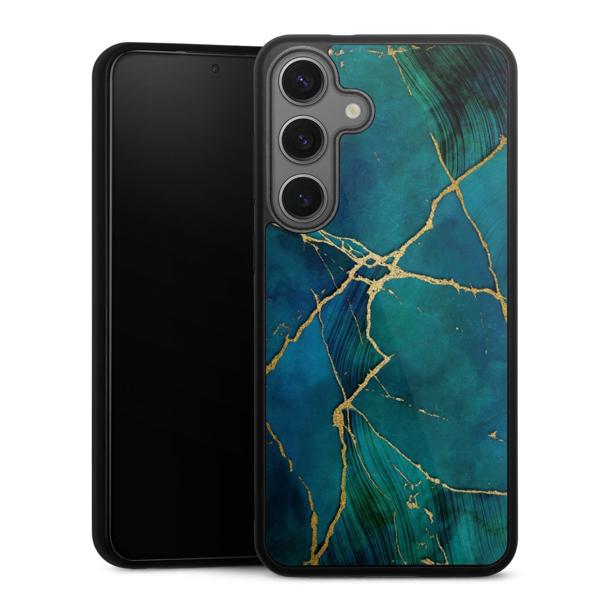 We print your design on the back of the glass inlay and then connect it firmly to the silicone case ,so that nothing sticks out and everything looks like it was cast from one piece. In addition, the sturdy glass element is protected from scratches by an additional coating and ensures a slight reflection on the shiny print image.