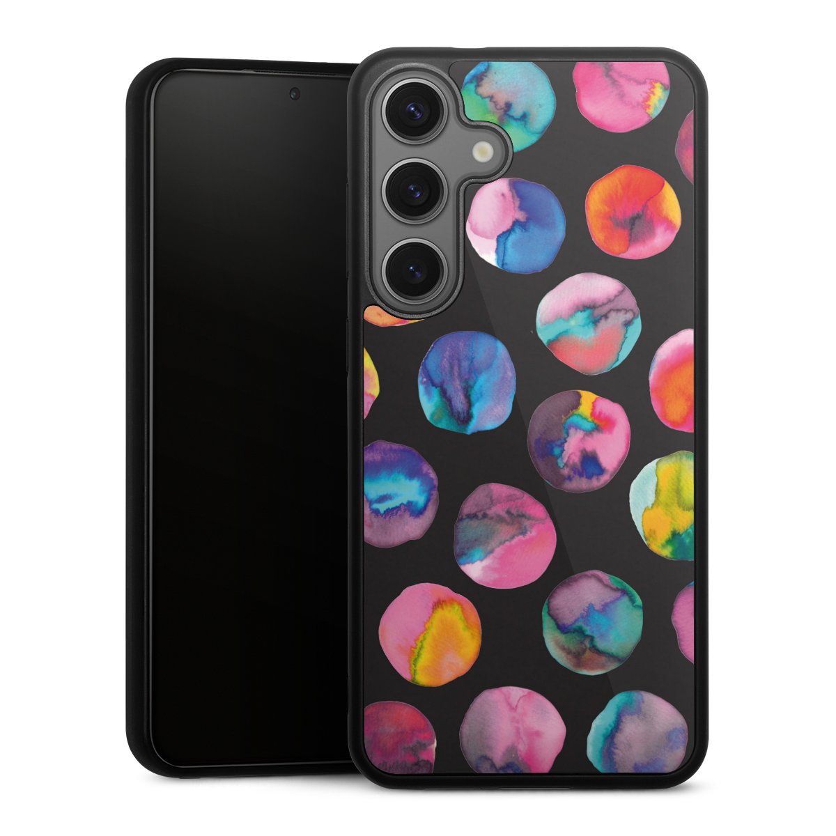 Colorful Ink Marbles Dots Black