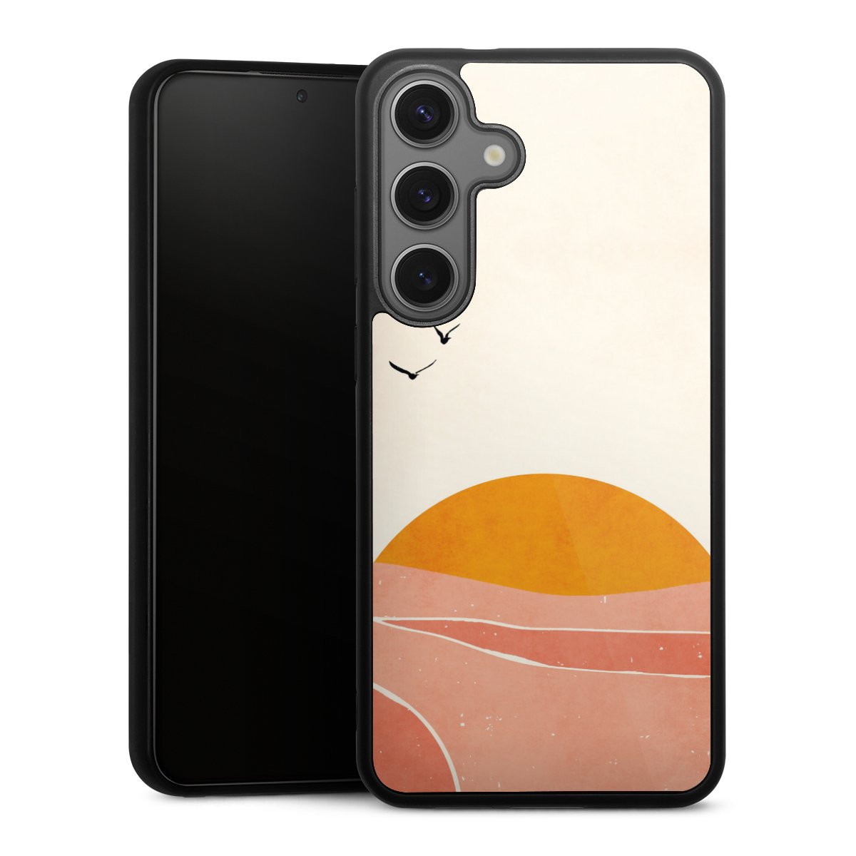 We print your design on the back of the glass inlay and then connect it firmly to the silicone case ,so that nothing sticks out and everything looks like it was cast from one piece. In addition, the sturdy glass element is protected from scratches by an additional coating and ensures a slight reflection on the shiny print image.