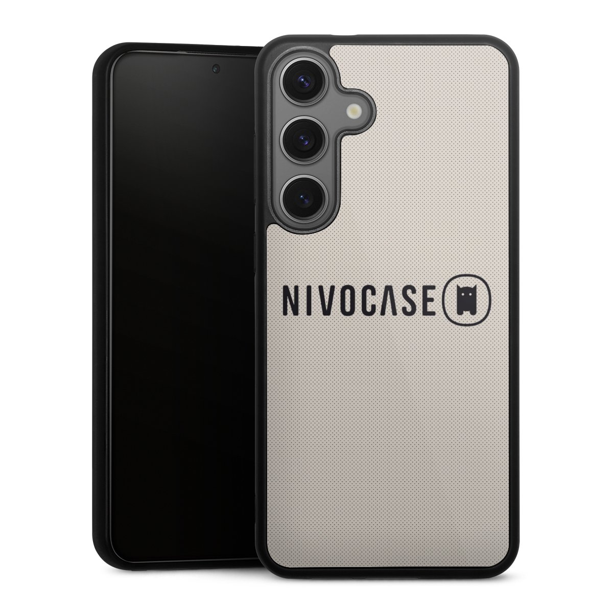We print your design on the back of the glass inlay and then connect it firmly to the silicone case ,so that nothing sticks out and everything looks like it was cast from one piece. In addition, the sturdy glass element is protected from scratches by an additional coating and ensures a slight reflection on the shiny print image.