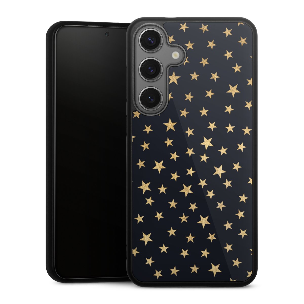 We print your design on the back of the glass inlay and then connect it firmly to the silicone case ,so that nothing sticks out and everything looks like it was cast from one piece. In addition, the sturdy glass element is protected from scratches by an additional coating and ensures a slight reflection on the shiny print image.