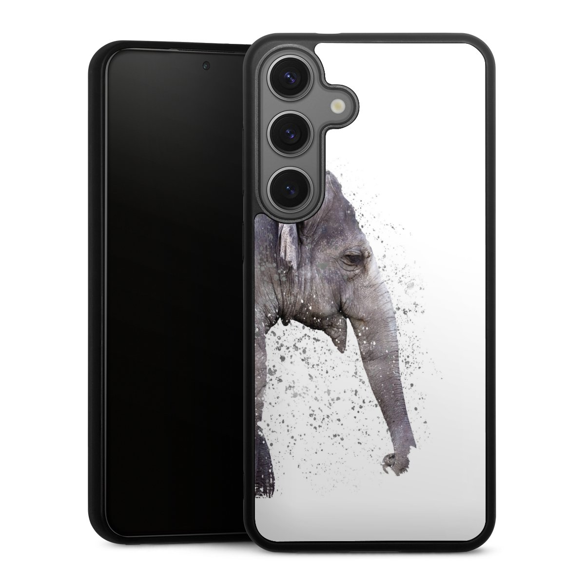 We print your design on the back of the glass inlay and then connect it firmly to the silicone case ,so that nothing sticks out and everything looks like it was cast from one piece. In addition, the sturdy glass element is protected from scratches by an additional coating and ensures a slight reflection on the shiny print image.