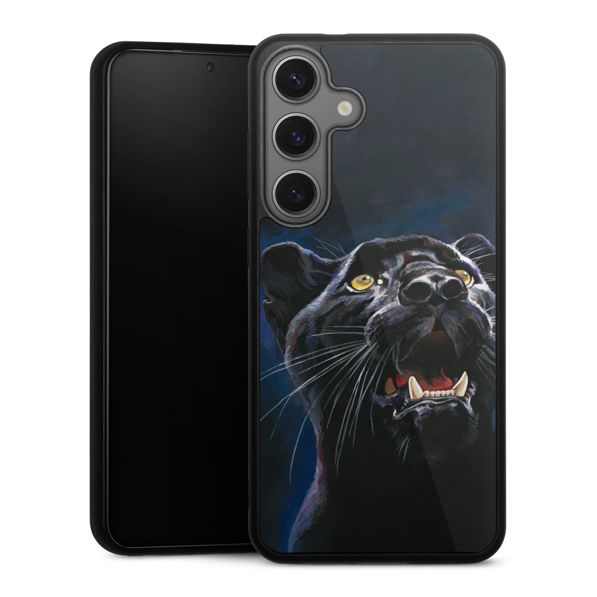 We print your design on the back of the glass inlay and then connect it firmly to the silicone case ,so that nothing sticks out and everything looks like it was cast from one piece. In addition, the sturdy glass element is protected from scratches by an additional coating and ensures a slight reflection on the shiny print image.