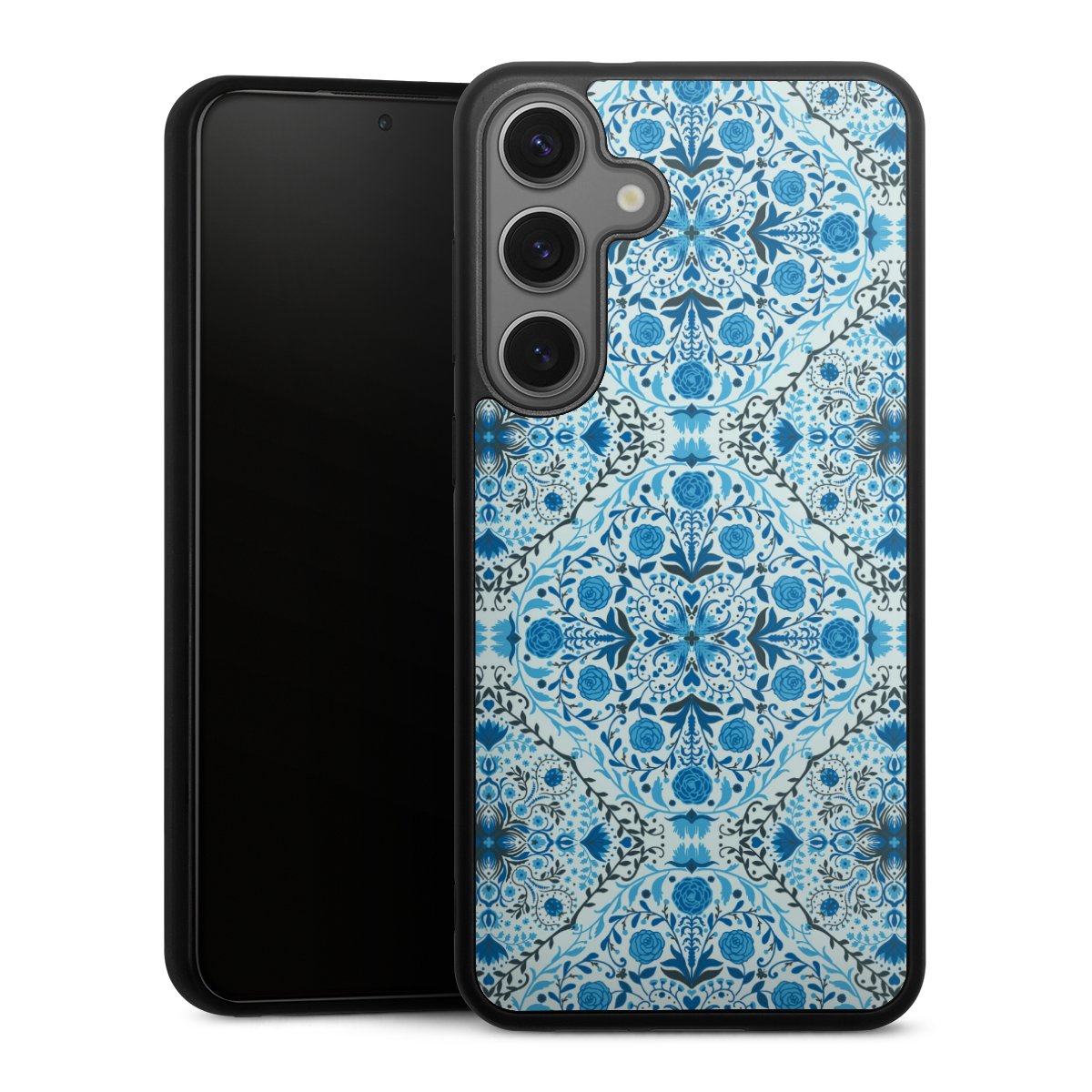 We print your design on the back of the glass inlay and then connect it firmly to the silicone case ,so that nothing sticks out and everything looks like it was cast from one piece. In addition, the sturdy glass element is protected from scratches by an additional coating and ensures a slight reflection on the shiny print image.