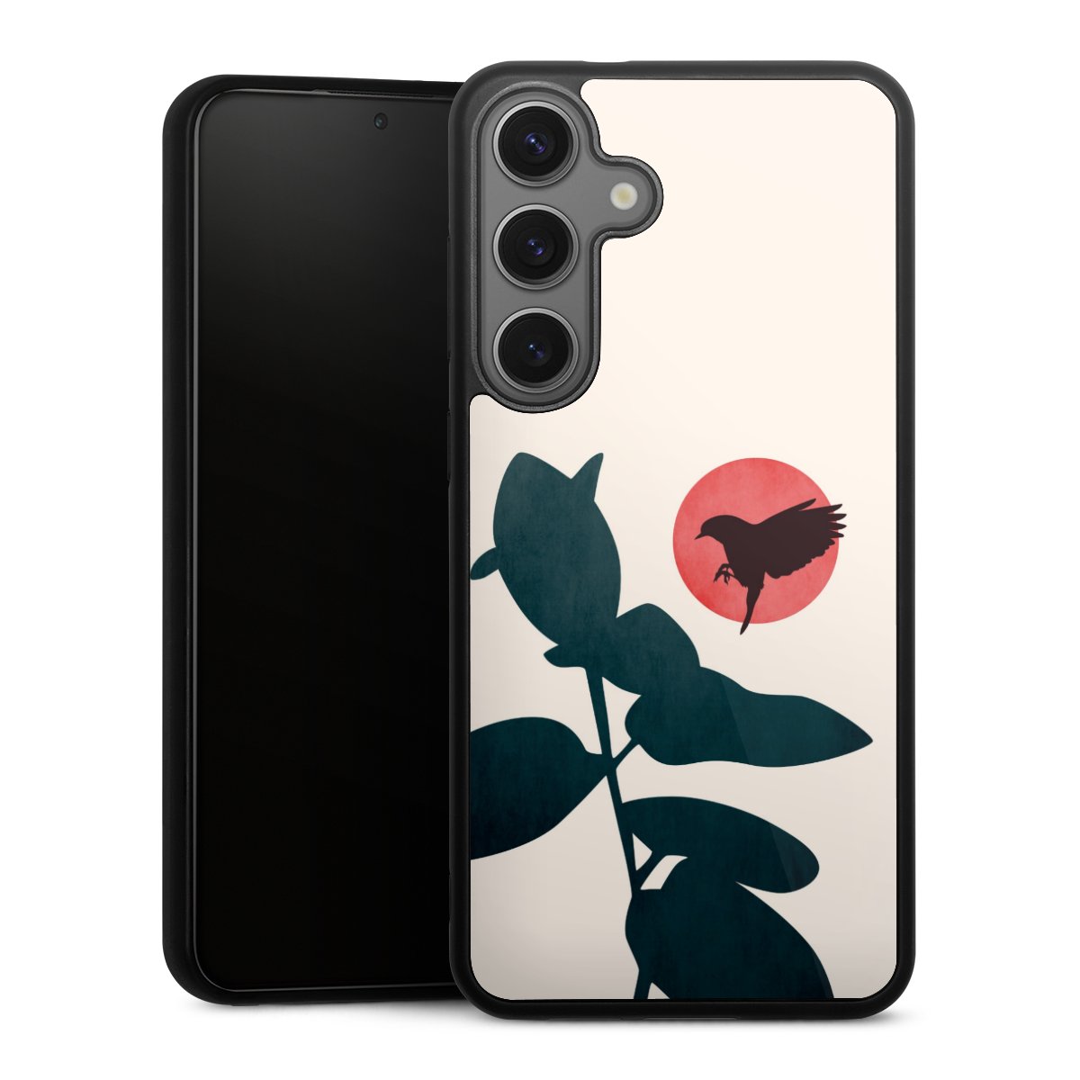 We print your design on the back of the glass inlay and then connect it firmly to the silicone case ,so that nothing sticks out and everything looks like it was cast from one piece. In addition, the sturdy glass element is protected from scratches by an additional coating and ensures a slight reflection on the shiny print image.