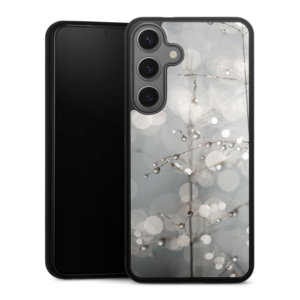 We print your design on the back of the glass inlay and then connect it firmly to the silicone case ,so that nothing sticks out and everything looks like it was cast from one piece. In addition, the sturdy glass element is protected from scratches by an additional coating and ensures a slight reflection on the shiny print image.