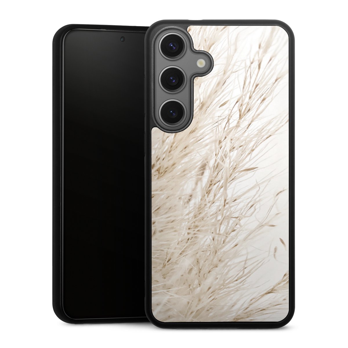 We print your design on the back of the glass inlay and then connect it firmly to the silicone case ,so that nothing sticks out and everything looks like it was cast from one piece. In addition, the sturdy glass element is protected from scratches by an additional coating and ensures a slight reflection on the shiny print image.
