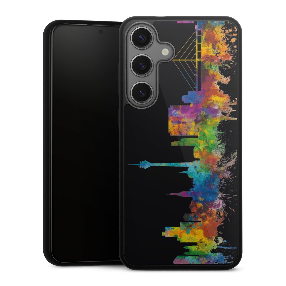 We print your design on the back of the glass inlay and then connect it firmly to the silicone case ,so that nothing sticks out and everything looks like it was cast from one piece. In addition, the sturdy glass element is protected from scratches by an additional coating and ensures a slight reflection on the shiny print image.