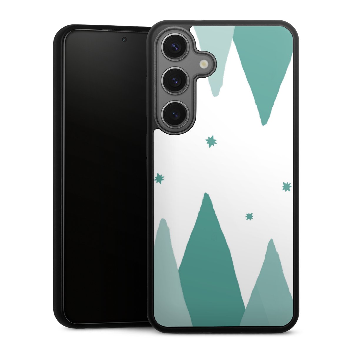 We print your design on the back of the glass inlay and then connect it firmly to the silicone case ,so that nothing sticks out and everything looks like it was cast from one piece. In addition, the sturdy glass element is protected from scratches by an additional coating and ensures a slight reflection on the shiny print image.