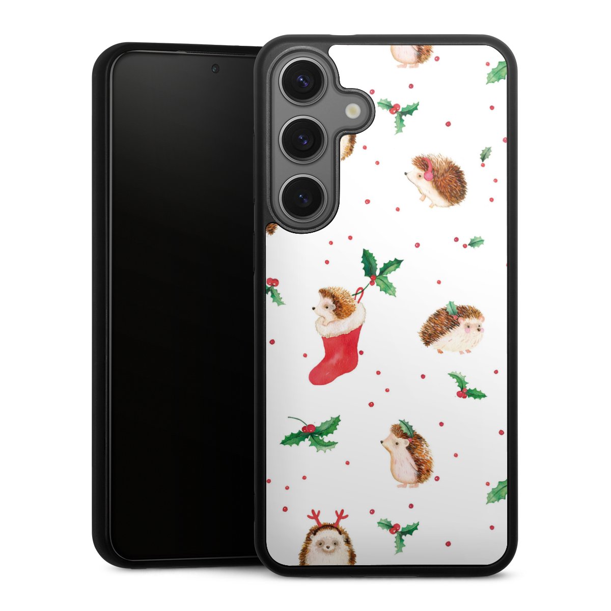 We print your design on the back of the glass inlay and then connect it firmly to the silicone case ,so that nothing sticks out and everything looks like it was cast from one piece. In addition, the sturdy glass element is protected from scratches by an additional coating and ensures a slight reflection on the shiny print image.