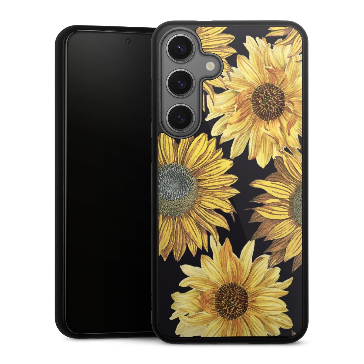 We print your design on the back of the glass inlay and then connect it firmly to the silicone case ,so that nothing sticks out and everything looks like it was cast from one piece. In addition, the sturdy glass element is protected from scratches by an additional coating and ensures a slight reflection on the shiny print image.