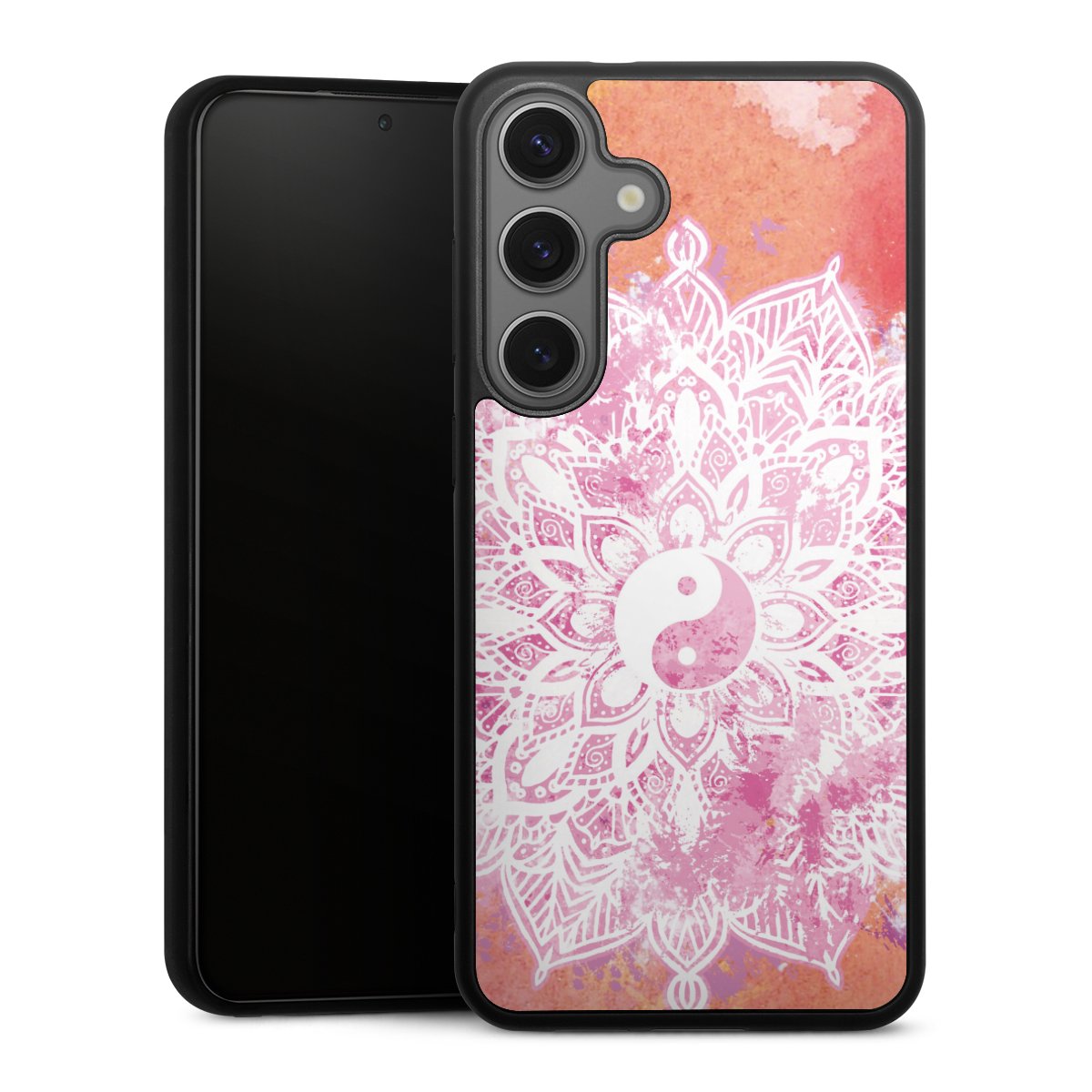 We print your design on the back of the glass inlay and then connect it firmly to the silicone case ,so that nothing sticks out and everything looks like it was cast from one piece. In addition, the sturdy glass element is protected from scratches by an additional coating and ensures a slight reflection on the shiny print image.