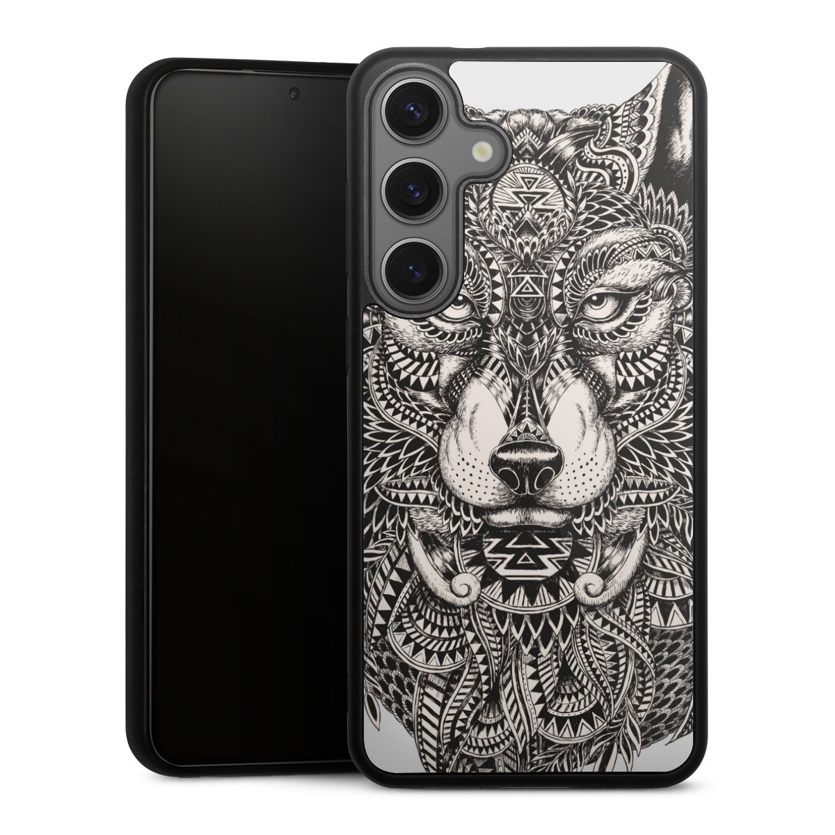 We print your design on the back of the glass inlay and then connect it firmly to the silicone case ,so that nothing sticks out and everything looks like it was cast from one piece. In addition, the sturdy glass element is protected from scratches by an additional coating and ensures a slight reflection on the shiny print image.