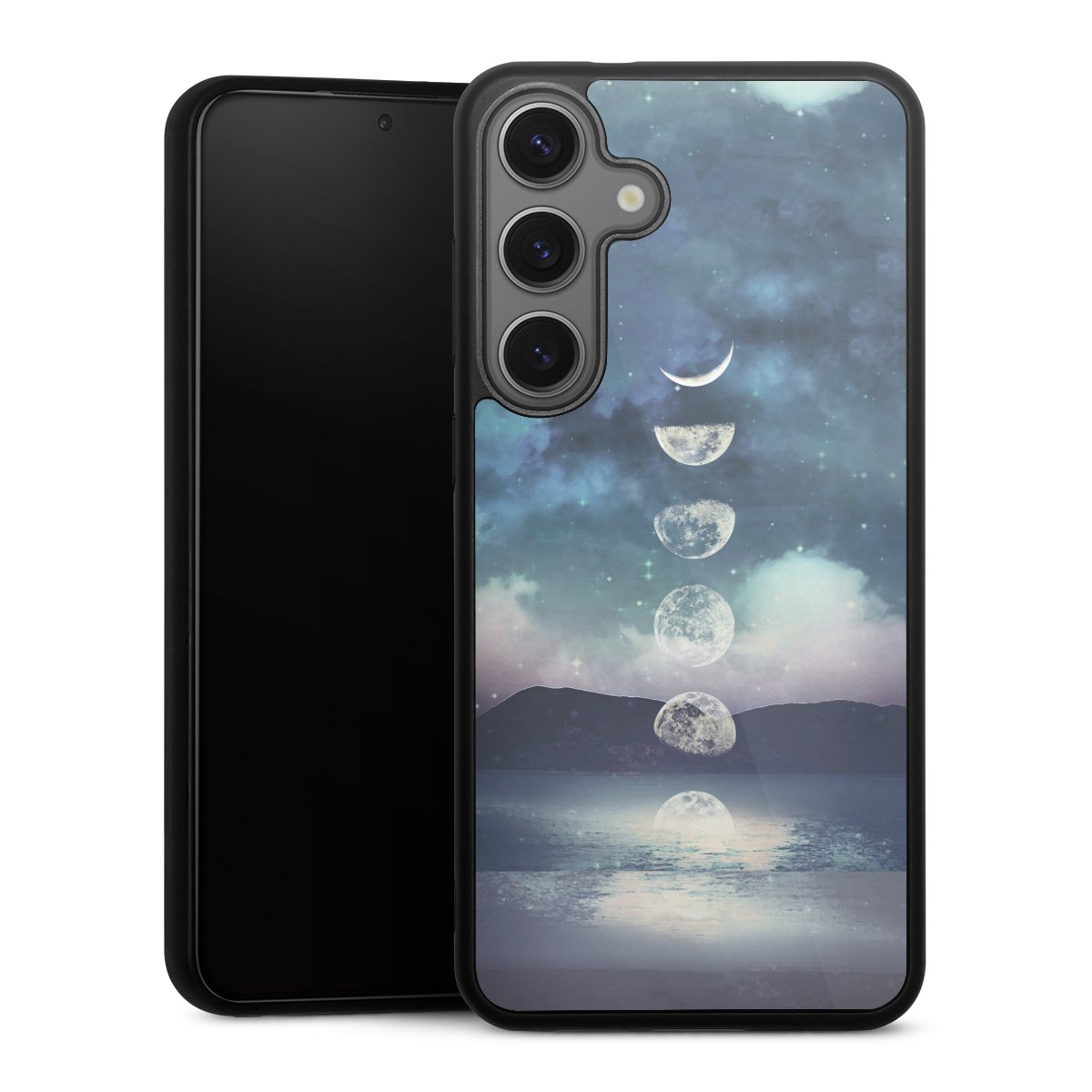 We print your design on the back of the glass inlay and then connect it firmly to the silicone case ,so that nothing sticks out and everything looks like it was cast from one piece. In addition, the sturdy glass element is protected from scratches by an additional coating and ensures a slight reflection on the shiny print image.