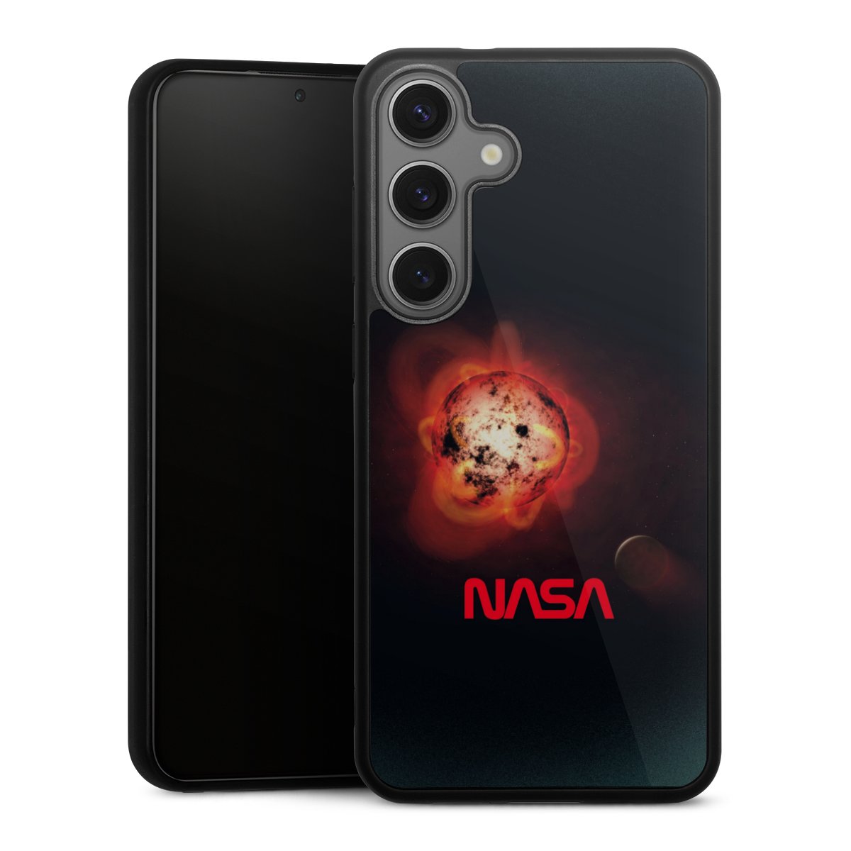 We print your design on the back of the glass inlay and then connect it firmly to the silicone case ,so that nothing sticks out and everything looks like it was cast from one piece. In addition, the sturdy glass element is protected from scratches by an additional coating and ensures a slight reflection on the shiny print image.
