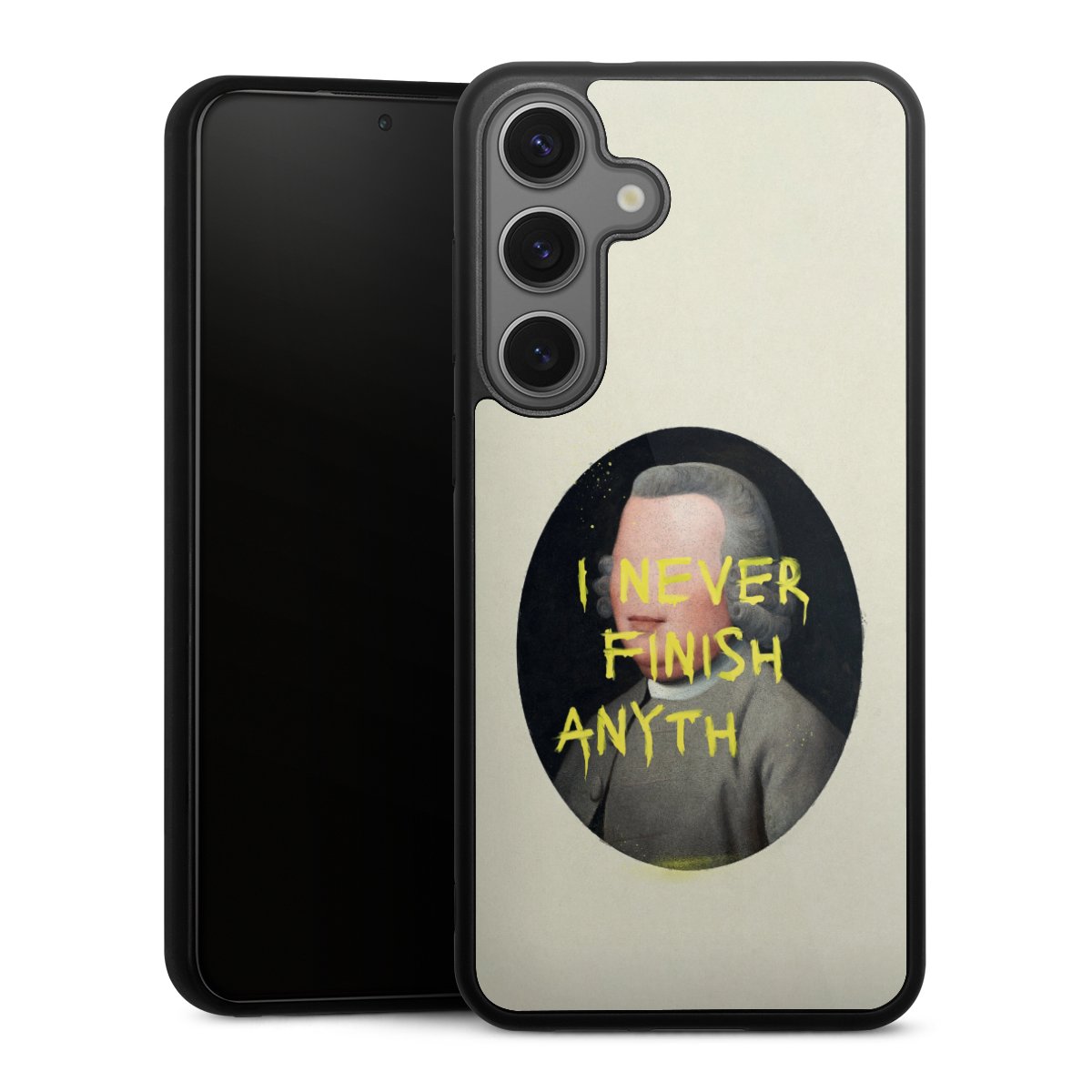 We print your design on the back of the glass inlay and then connect it firmly to the silicone case ,so that nothing sticks out and everything looks like it was cast from one piece. In addition, the sturdy glass element is protected from scratches by an additional coating and ensures a slight reflection on the shiny print image.