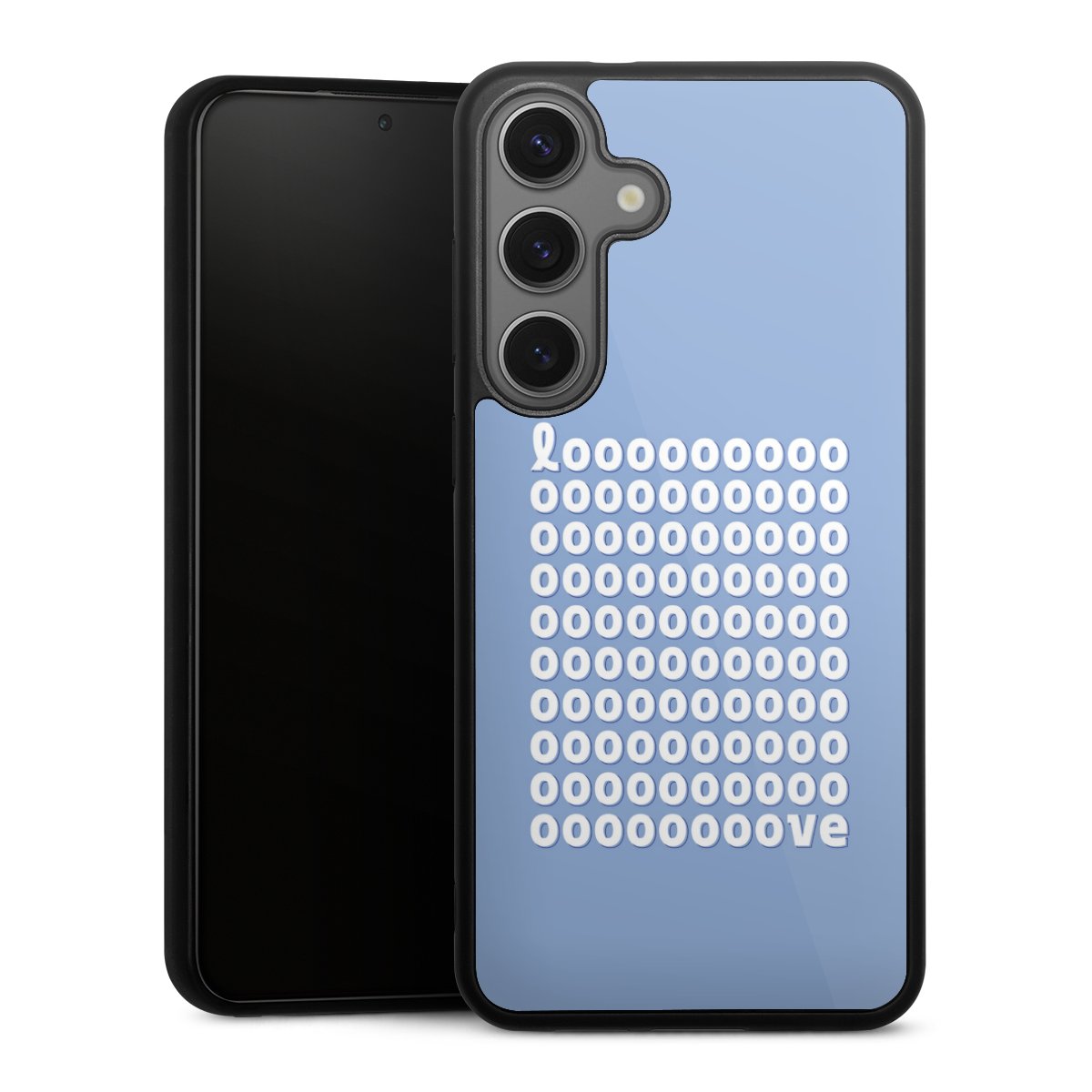 We print your design on the back of the glass inlay and then connect it firmly to the silicone case ,so that nothing sticks out and everything looks like it was cast from one piece. In addition, the sturdy glass element is protected from scratches by an additional coating and ensures a slight reflection on the shiny print image.