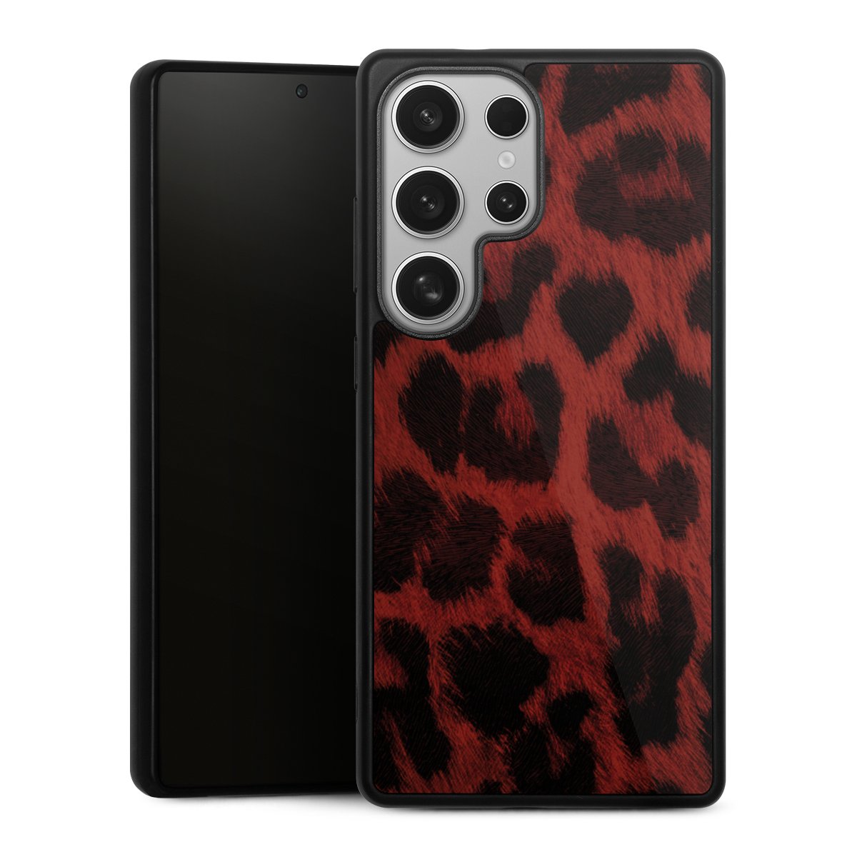 We print your design on the back of the glass inlay and then connect it firmly to the silicone case ,so that nothing sticks out and everything looks like it was cast from one piece. In addition, the sturdy glass element is protected from scratches by an additional coating and ensures a slight reflection on the shiny print image.