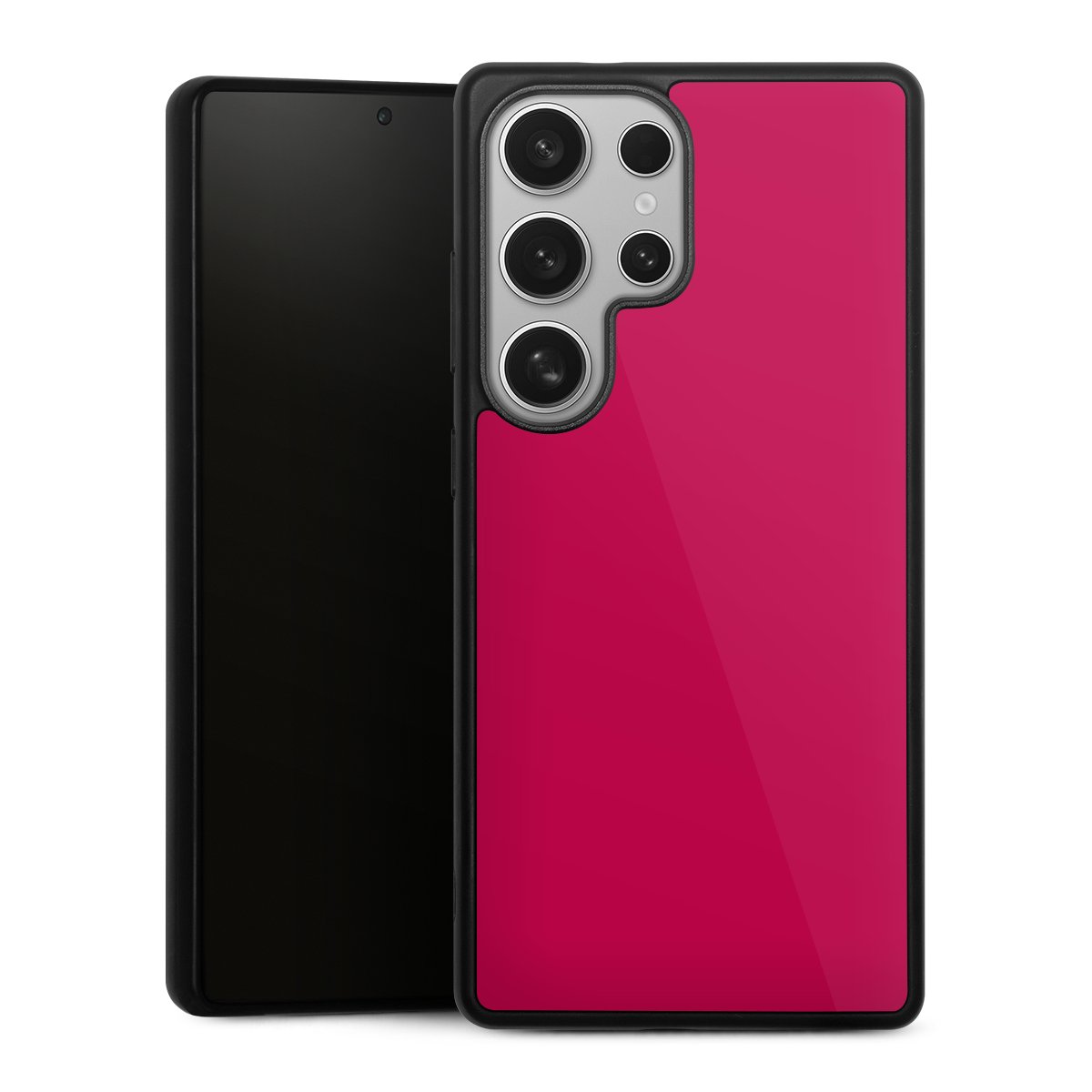 We print your design on the back of the glass inlay and then connect it firmly to the silicone case ,so that nothing sticks out and everything looks like it was cast from one piece. In addition, the sturdy glass element is protected from scratches by an additional coating and ensures a slight reflection on the shiny print image.