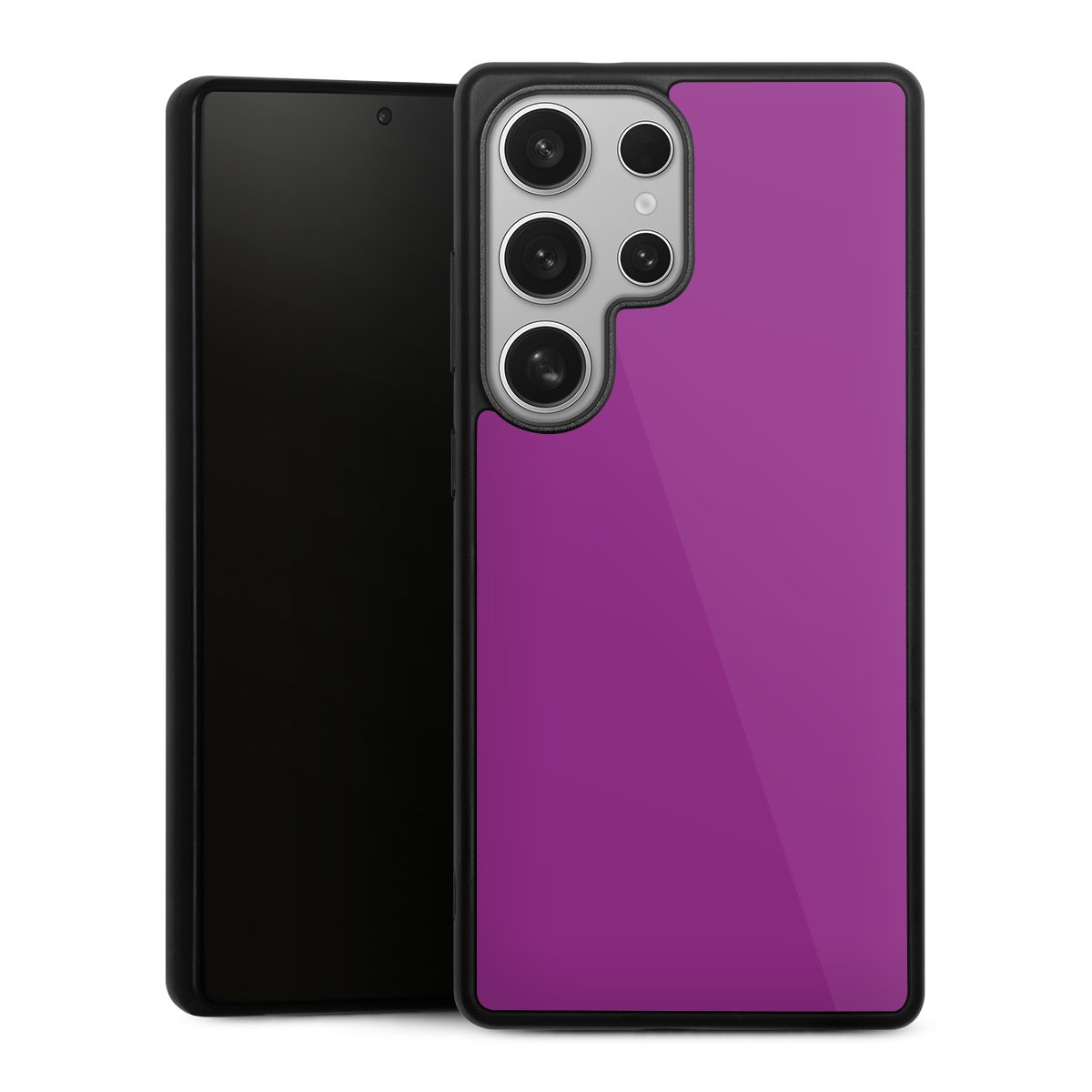 We print your design on the back of the glass inlay and then connect it firmly to the silicone case ,so that nothing sticks out and everything looks like it was cast from one piece. In addition, the sturdy glass element is protected from scratches by an additional coating and ensures a slight reflection on the shiny print image.