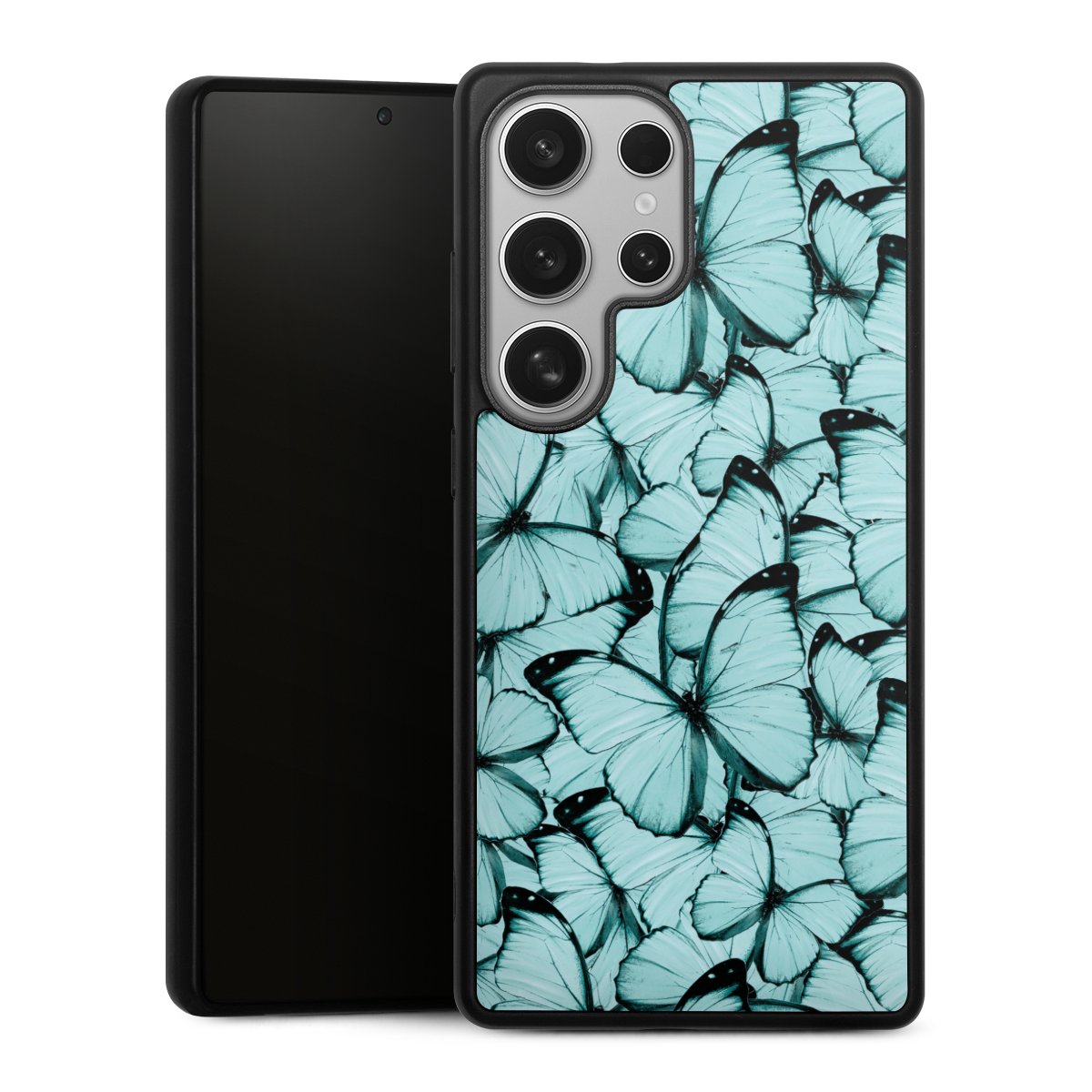 We print your design on the back of the glass inlay and then connect it firmly to the silicone case ,so that nothing sticks out and everything looks like it was cast from one piece. In addition, the sturdy glass element is protected from scratches by an additional coating and ensures a slight reflection on the shiny print image.