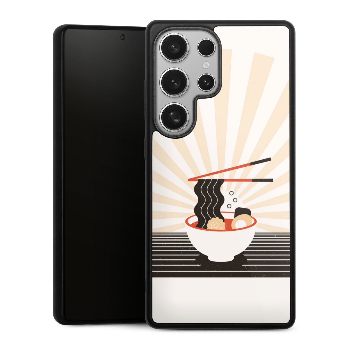 We print your design on the back of the glass inlay and then connect it firmly to the silicone case ,so that nothing sticks out and everything looks like it was cast from one piece. In addition, the sturdy glass element is protected from scratches by an additional coating and ensures a slight reflection on the shiny print image.