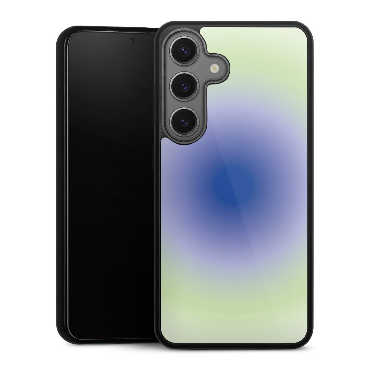 We print your design on the back of the glass inlay and then connect it firmly to the silicone case ,so that nothing sticks out and everything looks like it was cast from one piece. In addition, the sturdy glass element is protected from scratches by an additional coating and ensures a slight reflection on the shiny print image.