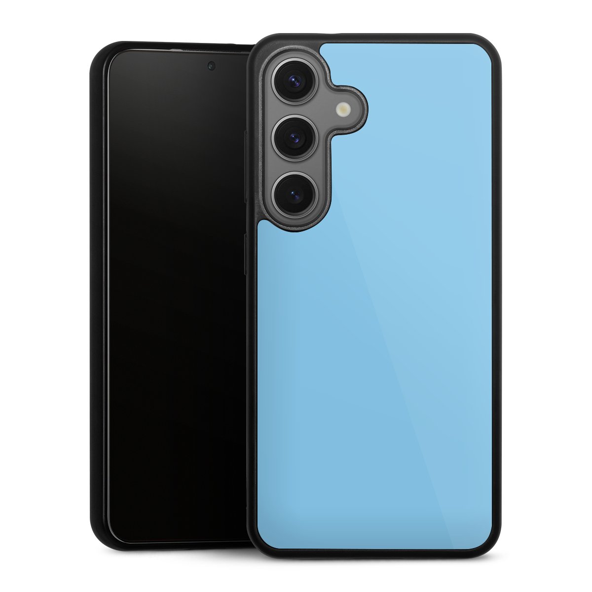We print your design on the back of the glass inlay and then connect it firmly to the silicone case ,so that nothing sticks out and everything looks like it was cast from one piece. In addition, the sturdy glass element is protected from scratches by an additional coating and ensures a slight reflection on the shiny print image.