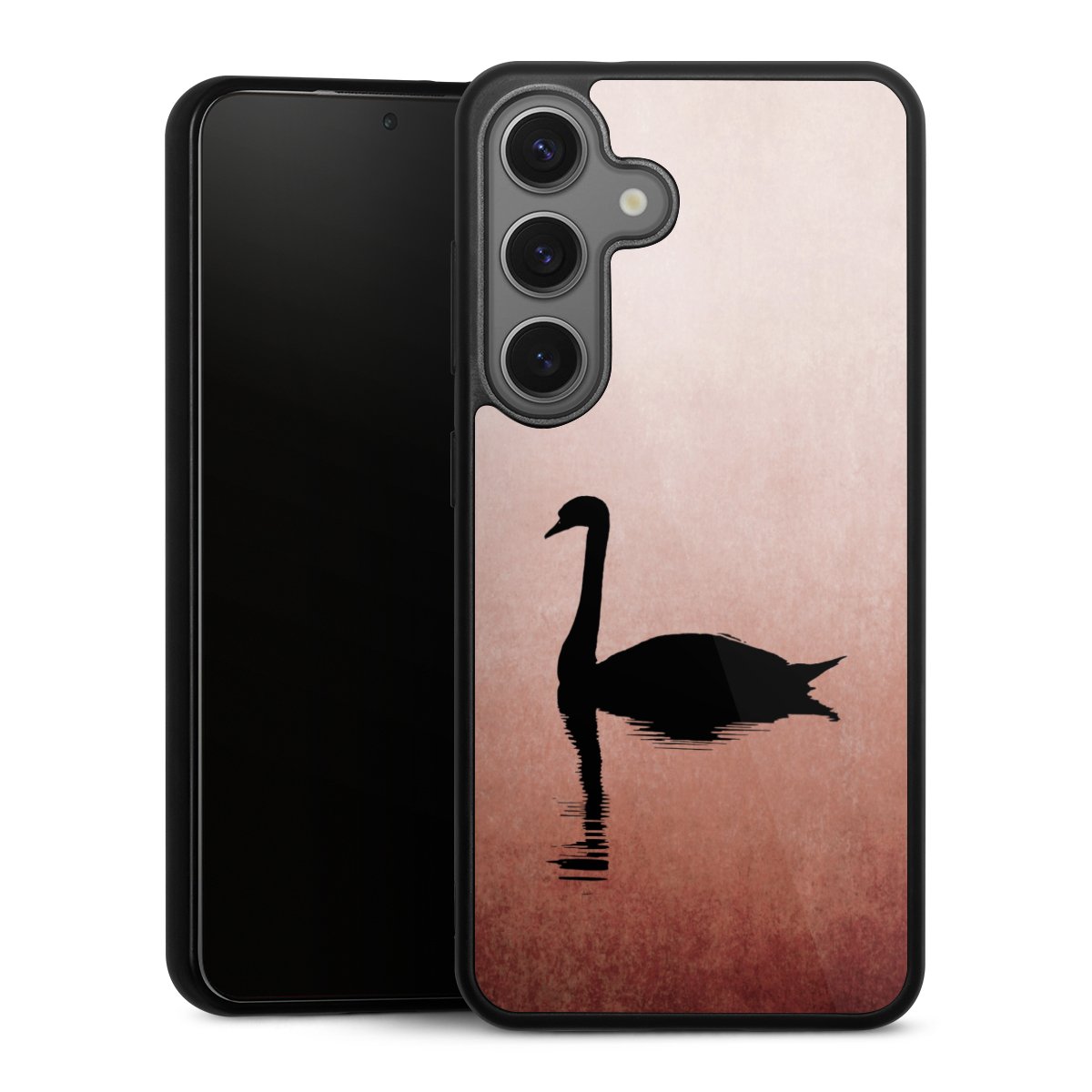 We print your design on the back of the glass inlay and then connect it firmly to the silicone case ,so that nothing sticks out and everything looks like it was cast from one piece. In addition, the sturdy glass element is protected from scratches by an additional coating and ensures a slight reflection on the shiny print image.