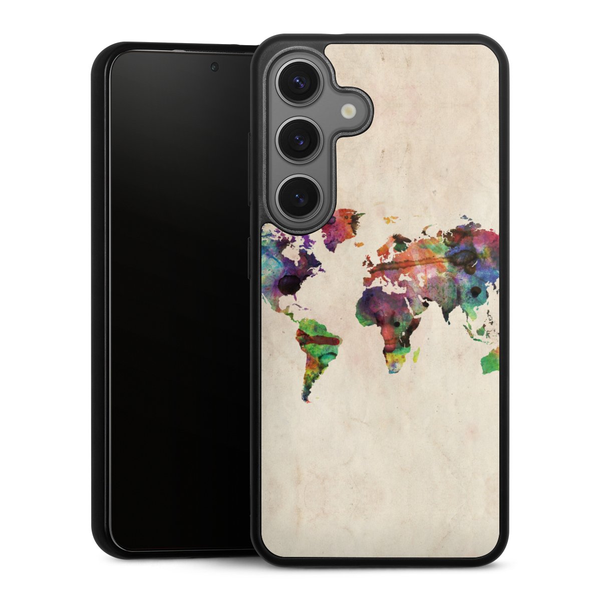 We print your design on the back of the glass inlay and then connect it firmly to the silicone case ,so that nothing sticks out and everything looks like it was cast from one piece. In addition, the sturdy glass element is protected from scratches by an additional coating and ensures a slight reflection on the shiny print image.
