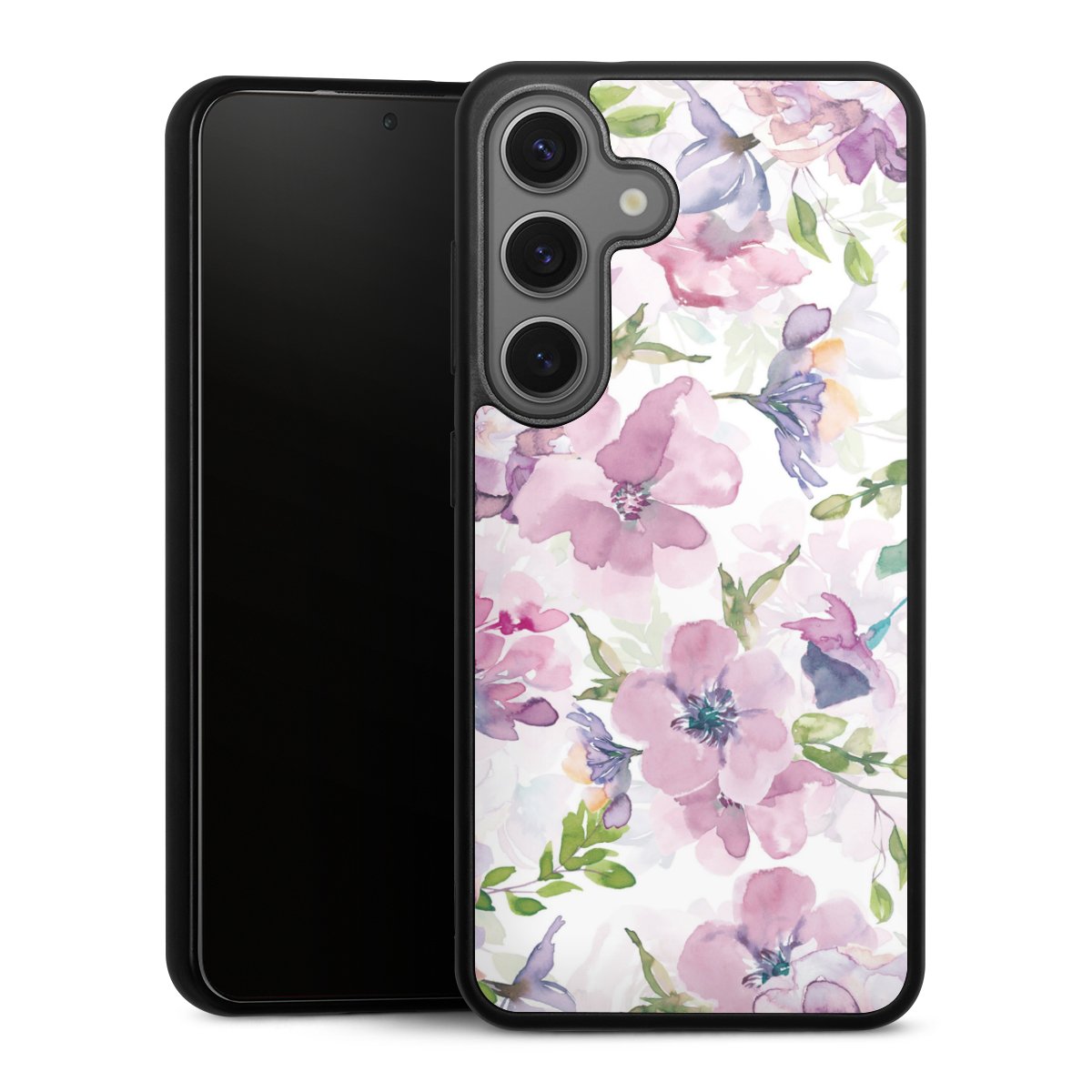 We print your design on the back of the glass inlay and then connect it firmly to the silicone case ,so that nothing sticks out and everything looks like it was cast from one piece. In addition, the sturdy glass element is protected from scratches by an additional coating and ensures a slight reflection on the shiny print image.