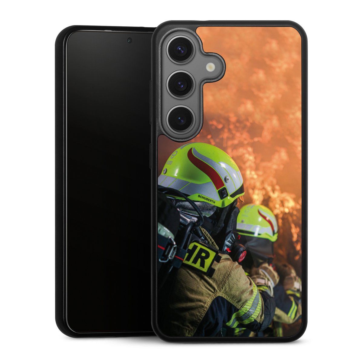We print your design on the back of the glass inlay and then connect it firmly to the silicone case ,so that nothing sticks out and everything looks like it was cast from one piece. In addition, the sturdy glass element is protected from scratches by an additional coating and ensures a slight reflection on the shiny print image.