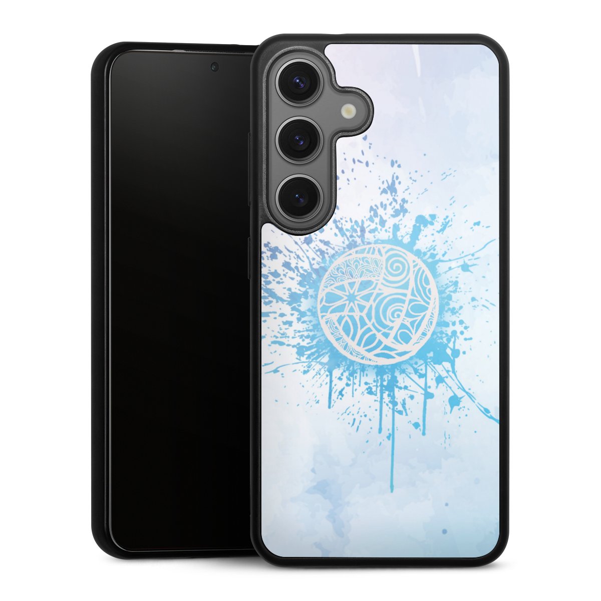 We print your design on the back of the glass inlay and then connect it firmly to the silicone case ,so that nothing sticks out and everything looks like it was cast from one piece. In addition, the sturdy glass element is protected from scratches by an additional coating and ensures a slight reflection on the shiny print image.