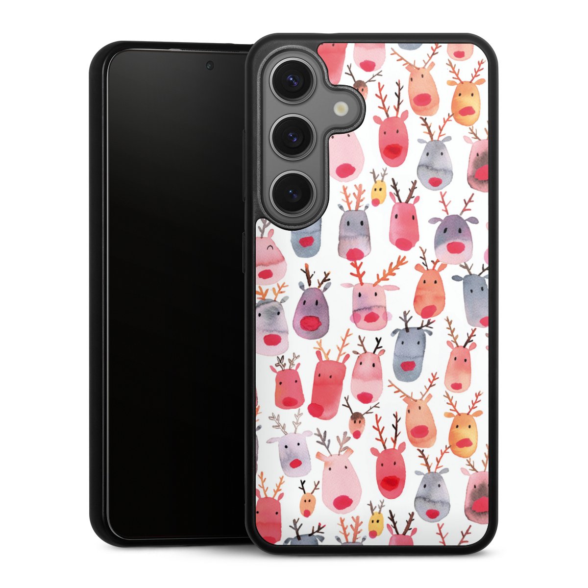 We print your design on the back of the glass inlay and then connect it firmly to the silicone case ,so that nothing sticks out and everything looks like it was cast from one piece. In addition, the sturdy glass element is protected from scratches by an additional coating and ensures a slight reflection on the shiny print image.