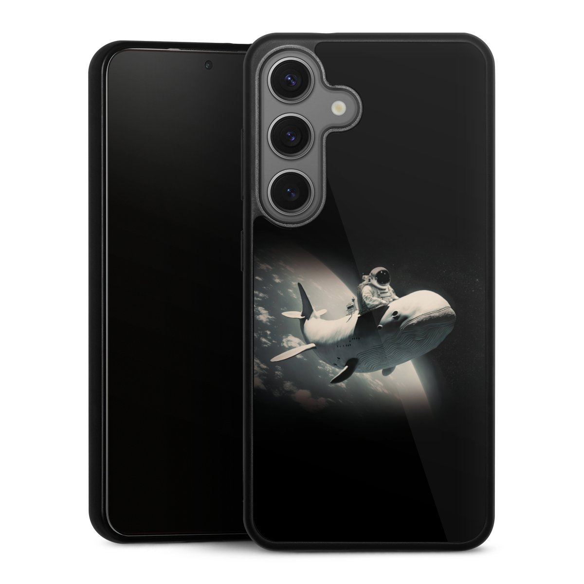 We print your design on the back of the glass inlay and then connect it firmly to the silicone case ,so that nothing sticks out and everything looks like it was cast from one piece. In addition, the sturdy glass element is protected from scratches by an additional coating and ensures a slight reflection on the shiny print image.